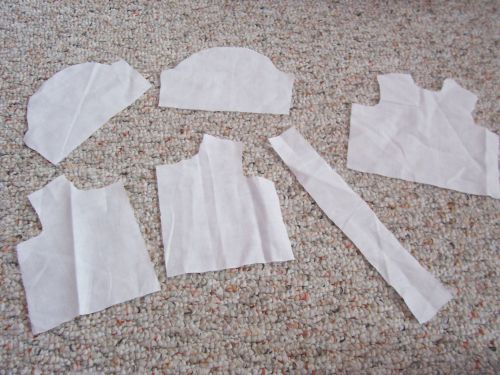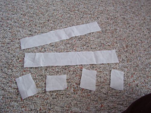 In addition, cut four small rectangles and two long rectangles, measuring about an inch long and at least 1.5 times (and at most 2 times) as wide as the edge of the sleeve.