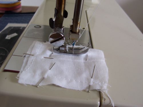 Take two of your small rectangles and pin them together. Sew up two long sides and one short side -- in effect, you're sewing a U.