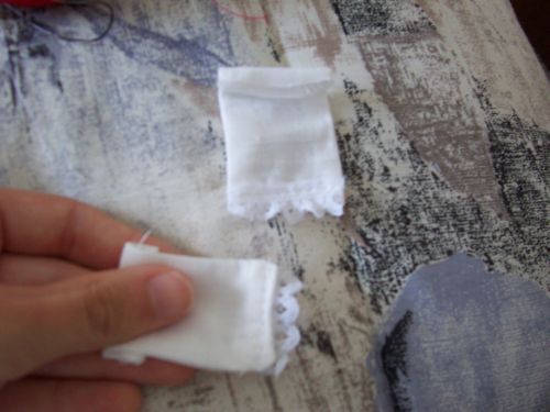 Sew a bit of lace to the bottom edge of your smaller rectangles.