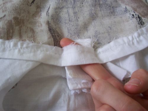 Pin right sides together, and sew it in. It should look like this. Do this to both of the sleeves, then continue putting the sleeves in like normal.