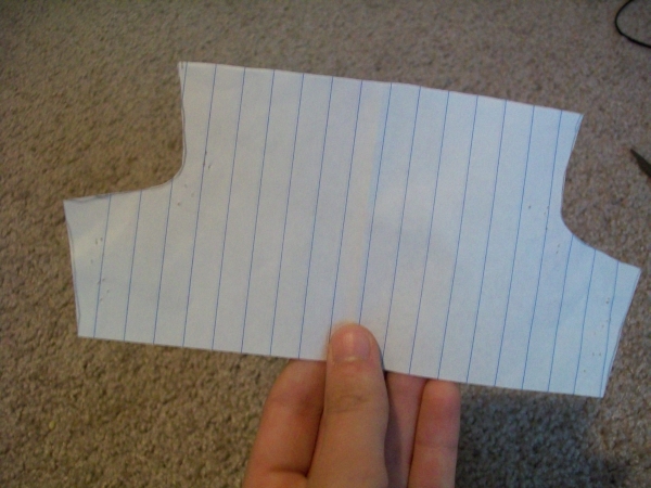 Step one is going to be to copy your bodice pattern to something, somewhere (I prefer notebook paper for such endevors), and take the shoulder straps off of it. You wind up with this nonsense: