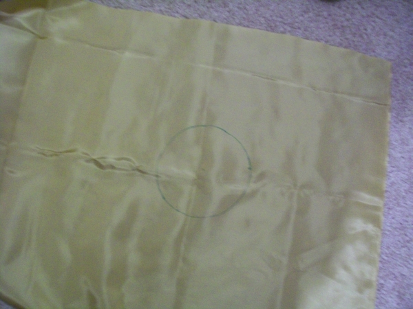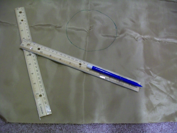 Take your marker and mark a center point on the cloth. Make sure you're giving yourself enough room to cut the outer circle.