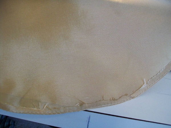 I looked all over the eWebs for a narrow hem tutorial I liked and couldn't find one, so I guess I have to make my own. On the outer edge of the circle, stitch a straight seam about 1/4 inch from the edge. Now, using that stitch as a guide, press the edge of the skirt inward. You'll have to use plenty of water. Stitch it down.
