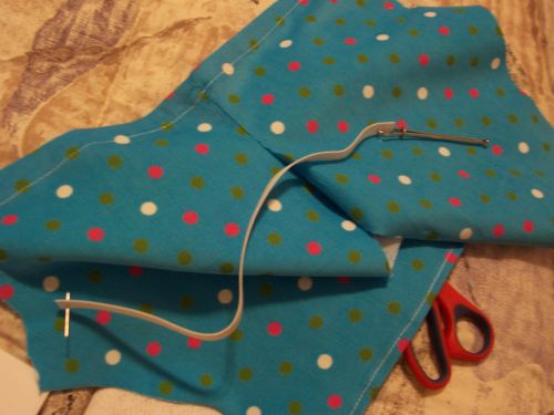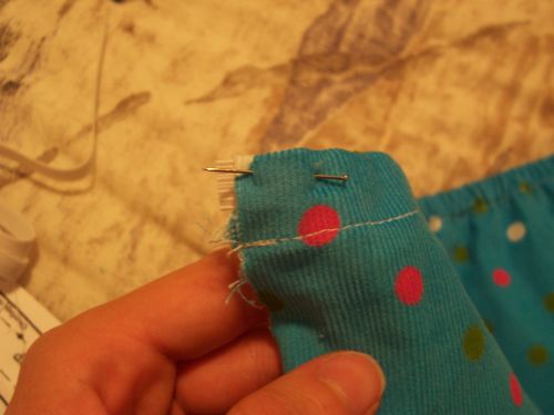 When you finish, make sure that a small bit of elastic sticks out of both ends of the casing. Very important!