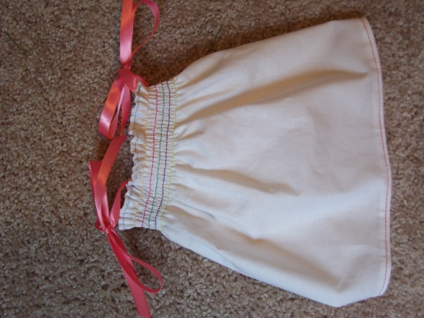Sew the straps in right on the hemline, using the same color you hemmed the dress in. MAKE SURE YOU STRETCH THE FABRIC AS IT GOES UNDER THE NEEDLE.