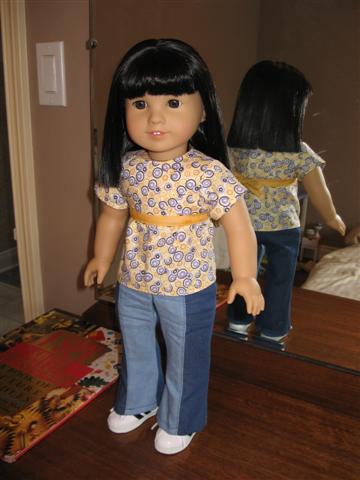 I combined my favorite elements from Bean's "tunic" and "regular tunic" tutorials. The bodice is lined like the tunic, but has a sash at the waist like the "regular tunic". This was fun to make!