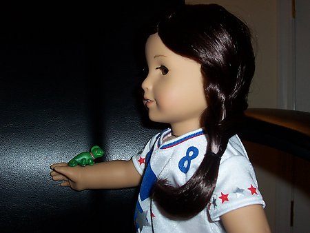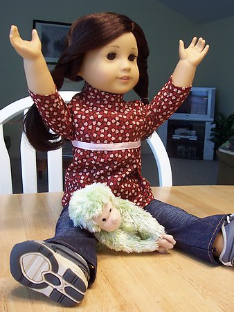 To say that Jess is active is an understatement. She's forever running, jumping, playing with her soccer ball, or otherwise living faster then the other dolls. Jess is the best climber in the house, and can help the other dolls access areas otherwise avalable only to humans.