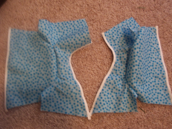 Line the back pieces of the skirt up with the bottom edges of the back pieces of the bodice.