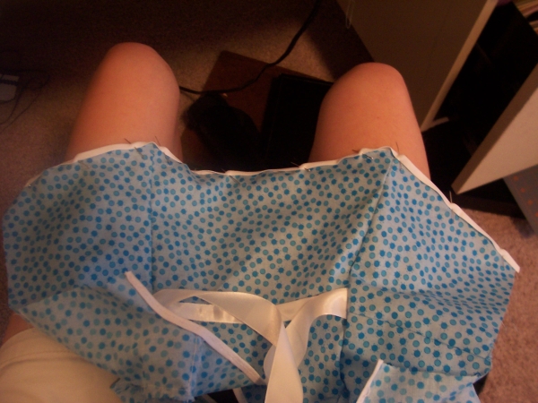 Stitch those sides down. Extra important note: MAKE SURE you don't stitch those extra ribbons into the side seam! They need to hang free.