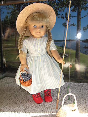 Kirsten is a pioneer who immigrated from Sweden to Minnesota when she was 9. Sometime after she turned ten, she discovered that she could not grow older! Ever year she turns ten in June and then ends up nine again in the winter. Last year she came to live with me. She calls me "adoptive mom" most of the time because both of us feel weird about her calling me "mom." She has recently gotten a sister, Emily, who has a similar age problem. Kirsten loves to be in charge, she is always dragging Emily along in her schemes. She has a very up front personality, which sometimes gets her in trouble. She also tends to have a "go get 'em" attitude, when she wants something, she finds a way to get it. Kirsten also likes to sew as well as to model for some of the things I sew. Other than the times she models for me, she stays in time-period correct clothing. Kirsten also enjoys the outdoors and fishing.