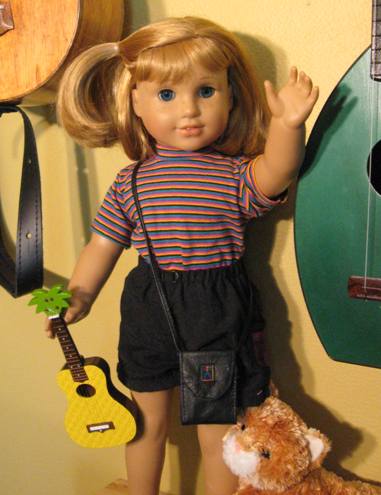 I'm fresh out of my Ebay box this morning! I'm the one and only gal on hand as "gently played with" Lindsey had what seemed to be a blowtorch mishap and is currently hospitalized. She never actually met Ozzie, the cat, so I'm totally taking him. Tomorrow we are off to the first music festival of the season and I even got my own cool Uke so I can do some of the workshops! I'll take time and wash my face tonight, but sending you a big "Hello" right now cause I didn't want to be late to the party! I can tell my new owner and I are going to have a great summer -- I got my new name before I even got completely out of that box.