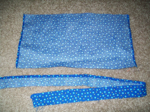 Either way, figure up how long you want your skirt, and how long you want your ruffle. The skirt should be as wide as your doll's waistline plus an inch and a half, and the ruffle should be twice as long.