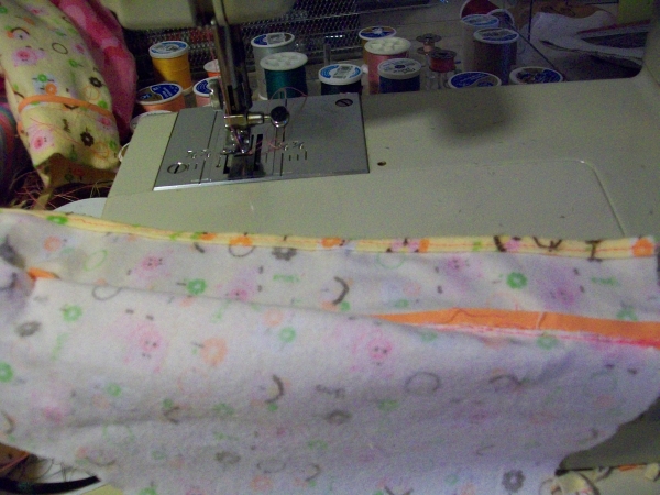 Speaking of which, every time we sew with piping you might consider adjusting the pressure on your machine's foot so it doesn't press down so heavily. It will go through the machine easier. Look in your manual to find out how to do that. Every machine's different, and I don't know how to set yours. Mine is a little knob on the top.