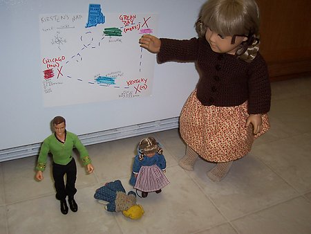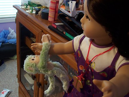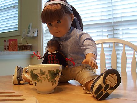 Mini Molly came to the house when Sara did, and has been her favorite doll ever since. She lost her glasses a while back.