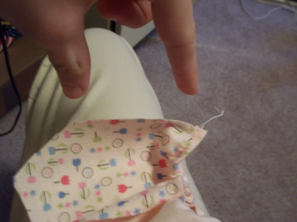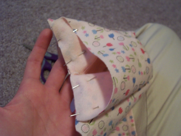 See how I've got my work stretched so that the triangle kind of makes a line? Do that, stitch it down, repeat for the other side.
