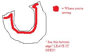 Fix all your Hiis and His up like this to get two big curves. Pin them together with right sides facing, then sew up the side edges and top edge. Confused? Of course you are! Look at my handy dandy MSPaint diagram here: