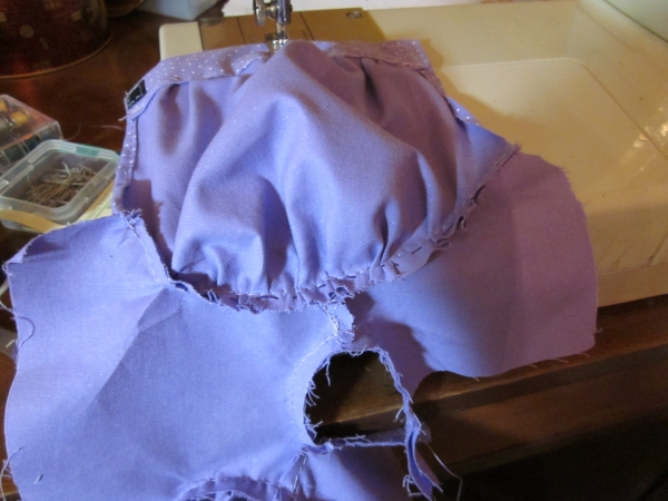 Put the bodice together, shoulder to shoulder, right sides together. Sew the collar in too if you're feeling it. (Hey, this sure does seem like making a shirt!)