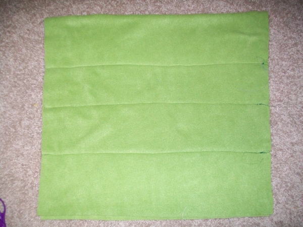 Your fleece should have a right side and a wrong side, and damnit if it's been going to church it should know the difference. With right sides facing in, sew up one of the short sides. Turn. Press if you're feeling saucy. That seam is now the top of your bag.
