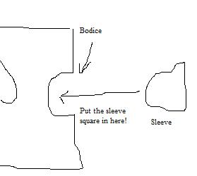There should be a round curve cutting inside the bodice, with its middle at the shoulder seam. This is the arm hole, but I usually call it the arm pit because I'm goofy. The curved edge of your sleeve fits there.
