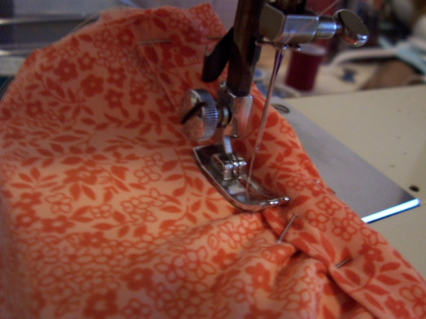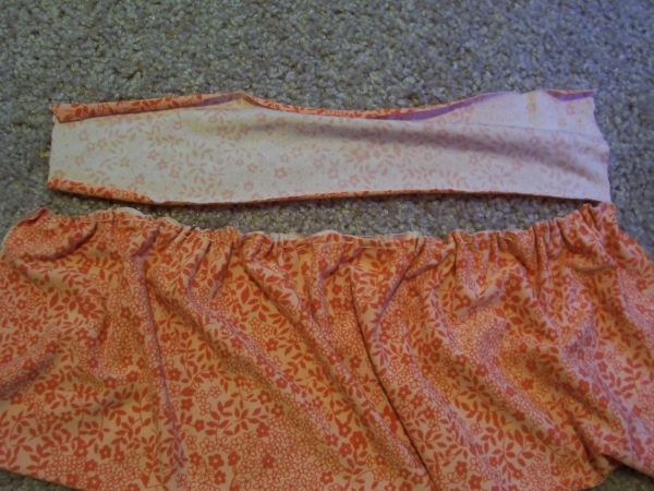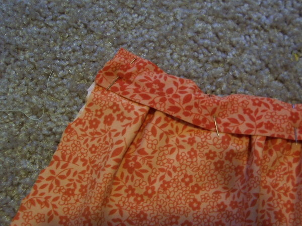 Sew the skirt along the edge of the waist band. If your machine has a stretch stitch, use it.