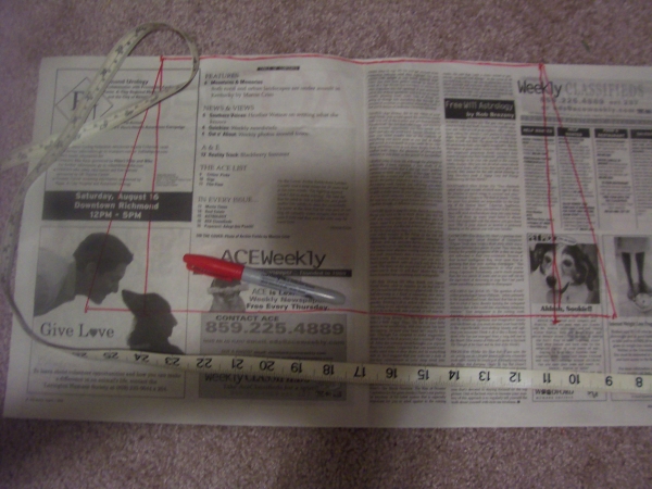 Now, on your news paper, draw a rectangle that measures your width by your length.