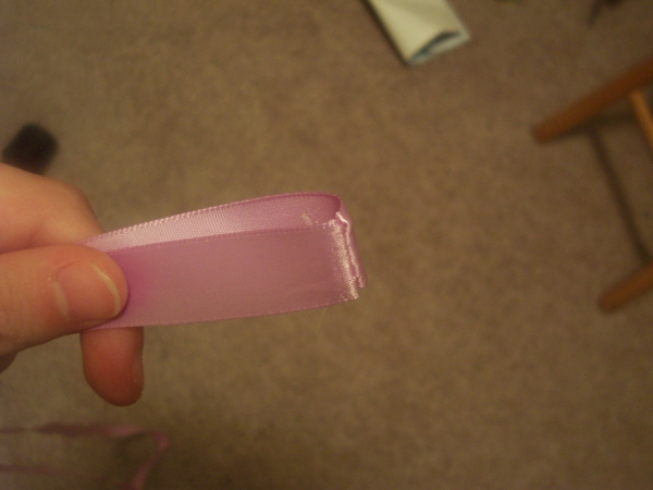 Take two lengths of ribbon at least three times as long as your doll's waist measurement. Sew them both together at the ends, right sides together. You'll be forming a giant loop, or an O. Press it flat at the ends so you get a squished O.