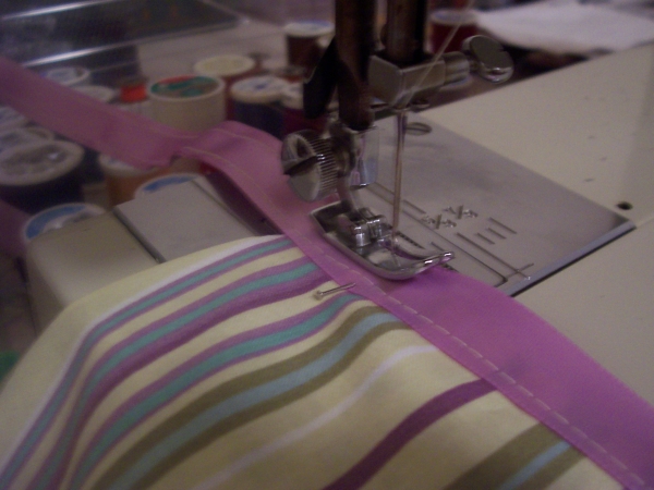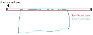 Lost? You're essentially stitching a rectangle around the edge of the waistband to trap the skirt inside.